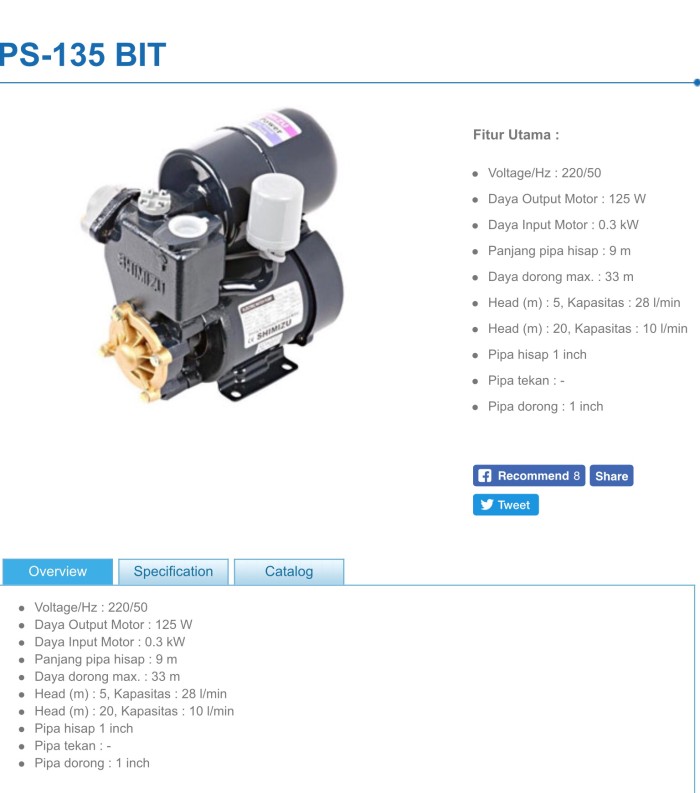 Jual pompa air shimizu ps135 e di lapak alfian ferdy w r sumber www.bukalapak.com.